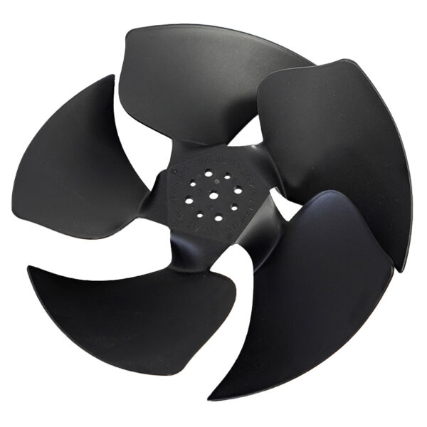 A 200MM DIAMETER, 5 BLADE PLASTIC FAN BLADE USED WITH FAN MTR ECM